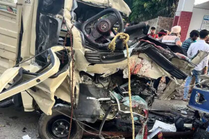 जालंधर में PRTC बस-मिनी ट्रक में टक्कर, 3 की मौत:कपूरथला से सब्जी मंडी जा रहे थे; हादसे के बाद धरने पर बैठा परिवार, सड़क जाम