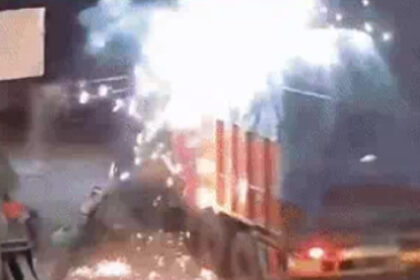 जालंधर में ओवरलोड ट्रक बिजली की तारों में फंसा, खंबा-तार टूटने से हुआ ब्लास्ट