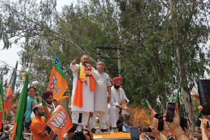 नामांकन से पहले रोड़ शो में पहुंचने पर जालंधर भाजपा के कार्यकर्ताओं…