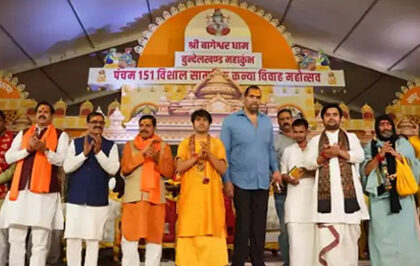 बागेश्वर धाम पहुंचे द ग्रेट खली:156 कन्याओं की सामूहिक शादी में शामिल हुए