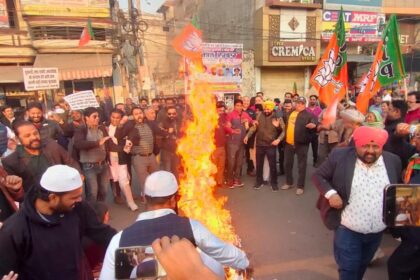 जालंधर मे बढ़ती आपराधिक घटनाओं के खिलाफ सैंकड़ों भाजपाईयो ने एकत्रित होकर प्रचंड पुतला फूक प्रदर्शन किया
