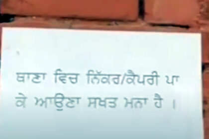 जालंधर के थाने में ड्रेस कोड लागू: इन लोगों को नहीं मिलेगी एंट्री,चिपकाया नोटिस