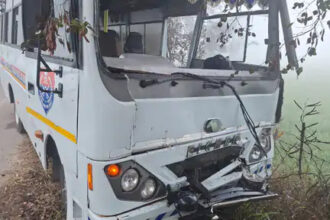 घने कोहरे के कारण पुलिस कर्मियों की बस हुई दुर्घटनाग्रस्त