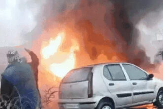 जालंधर में कार बाजार में लगी आग: 5 गाड़ियां जल कर हुई खाक ,देखे वीडियो