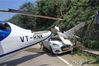तीर्थयात्रियों को लेकर केदरानाथ जा रहे हेलीकॉप्टर की सड़क पर इमरजेंसी लैंडिंग