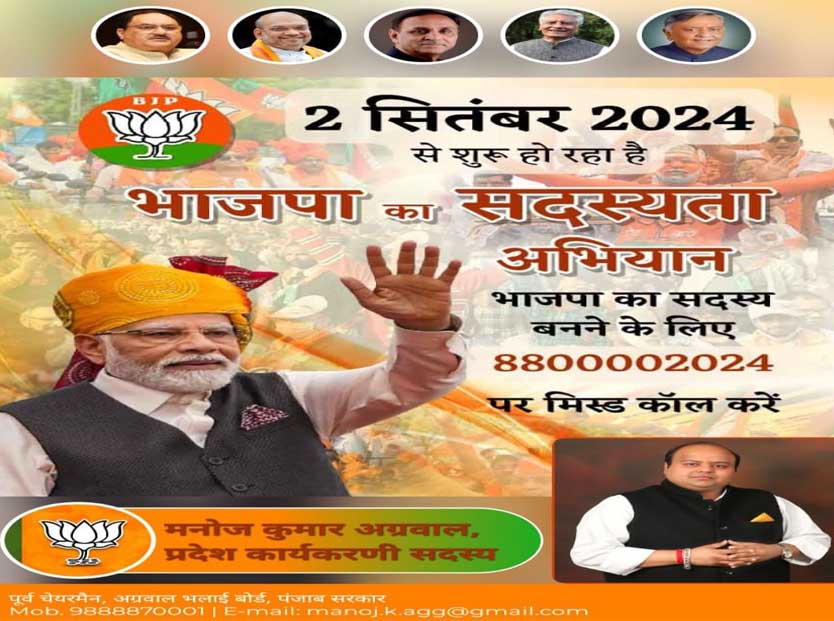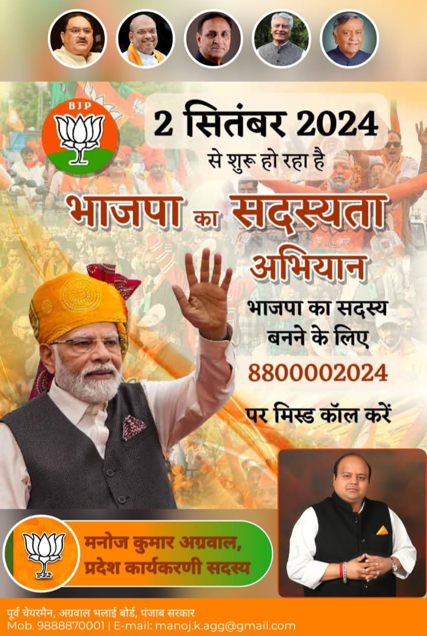 जालंधर (दीपक पंडित) भाजपा के सदस्यता अभियान को लेकर पंजाब में भाजपा नेताओं ने मोर्चा संभाला हुआ है। इन्हीं नेताओं में एक नेता हैं। पंजाब भाजपा कार्यकारिणी सदस्य मनोज अग्रवाल। चेहरे से शांत और पार्टी की विचारधारा के प्रति बिल्कुल गंभीर दिखने वाले मनोज अग्रवाल ने इस सदस्यता अभियान को सफल बनाने के लिए दिनरात बैठकों का दौर जारी रखा हुआ है। अग्रवाल ने बताया कि भाजपा का परिवार दिनोंदिन बढ़ता जा रहा है जोकि इस बात का प्रमाण है कि विपक्षी दलों की हर साजिश का भंडाफोड़ हो चुका है। उन्होंने कहा कि कांग्रेस, आम आदमी पार्टी आपस में घी खिचड़ी हैं और एक-दूसरे पर आरोप लगाकर लोगों को गुमराह करने का प्रयास कर रहे हैं। लेकिन जनता इन दोनों की सच्चाई जान चुकी है। उन्होंने कहा कि भाजपा का सदस्यता अभियान पीएम नरेंद्र मोदी, गृह मंत्री अमित शाह और राष्ट्रीय अध्यक्ष जेपी नड्डा की अगुवाई में ऐसा इतिहास रचेगा जिसकी कल्पना किसी ने नहीं की होगी।