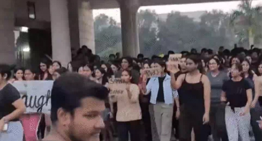 रविवार (22 सितंबर) दोपहर करीब साढ़े 3 बजे लॉ यूनिवर्सिटी की छात्राओं ने अचानक वीसी रेजिडेंस के सामने प्रदर्शन शुरू कर दिया। उनका आरोप था कि वाइस चांसलर अचानक गर्ल्स हॉस्टल की चेकिंग करते हैं। वह जिन कपड़ों में होती हैं, उन पर कमेंट्स करते हैं। यह उनकी प्राइवेसी के अधिकार का उल्लंघन है।
