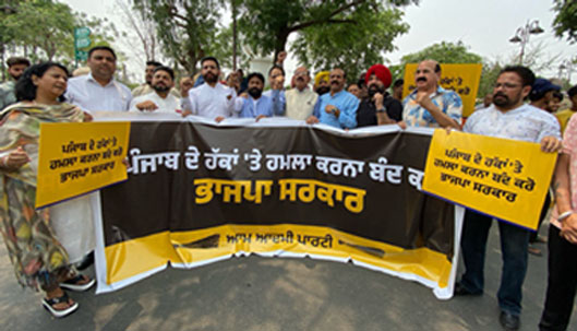 केंद्र सरकार के खिलाफ नारेबाजी करते हुए कैबिनेट मंत्री ने कहा कि पंजाब की आवाज पूरे देश में सुनाई देगी। उन्होंने कहा कि आम आदमी पार्टी के नेता 117 विधानसभा क्षेत्रों में विरोध प्रदर्शन कर रहे हैं। उन्होंने कहा कि हम अपने पानी, अधिकार और भविष्य के लिए एकजुट खड़े है।