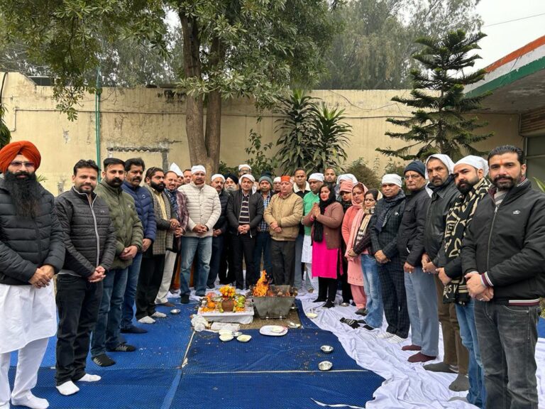 जालंधर (दीपक पंडित) श्रीराम जन्मभूमि मंदिर प्राण प्रतिष्ठा के उपल्क्ष में जिला कांग्रेस कमेटी ने शहरी वालो कांग्रेस भवन में हवन का आयोजन किया। इस मौके पर अध्यक्ष राजिंदर बेरी ने कहा कि आज का दिन बहुत ही ऐतिहासिक दिन है, पूरा देश भगवान श्री राम की मृत्यु का जश्न मना रहा है. जालंधर शहर भी श्री रामजी के रंग में रंग गया है. हम सभी को श्री राम जी के बताये मार्ग पर चलना चाहिए। इस हवन में जिला महिला शहरी प्रधान कंचन ठाकुर,पवन कुमार, हरीश ढल्ल, रछपाल जाखू, संजू अरोड़ा, मनमोहन सिंह मोना, बचन लाल, नरेश वर्मा, जगदीश समरे, विकास संगर, ऋषि केश वर्मा, बलबीर अंगुराल, कंचन ठाकुर, पलवी, सुरजीत कौर, ममता साहनी, रवि बागा, ब्रह्म देव, अमरीक केपी, हरपाल मिंटू, सतपाल रॉय, लछमन माहे, पवन कौशल, रविंदर कीमती, जगमोहन छाबड़ा, भारत भूषण, निशांत घई, मुनीश पाहवा, सुधीर घुग्गी, सौरव शंगारी, मनीष महिंदरू, सुलिंदर कंडी, रविंदर रवि , हरजीत बिक्का, हरपाल सिंह संधू उपस्थित थे।