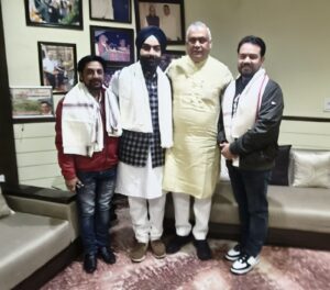 जालंधर (दीपक पंडित) रूस में 1 मार्च से 7 मार्च तक होने वाले विश्व युवा महोत्सव ( वर्ल्ड यूथ फेस्टिवल) के लिए जाने वाले भारतीय दल “भारत 360” का नेतृत्व करने वाले चेयरमैन वरुण कश्यप और डेलिगेट युवा समाज सेवक कुलविंदर सिंह जौली बेदी व अशोक अनुज को भाजपा की राष्ट्रीय कार्यकारिणी के सदस्य एवं पूर्व मंत्री मनोरंजन कालिया तथा भारतीय जनता पार्टी के प्रदेश उपाध्यक्ष एवं पंजाब सरकार के पूर्व मुख्य संसदीय सचिव के.डी. भंडारी ने अपनी शुभकामनाएं दी । इस मौके पर उन्होंने रूस में भारत की शानदार तस्वीर प्रस्तुत करने के लिए सुझाव दिए।